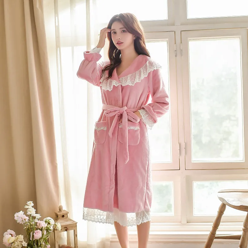 Winter Thick Warm Women's Flannel Robe Sets Vintage Princess Sleepwear Suits Loose Bathrobe 4 Colors Home Wear